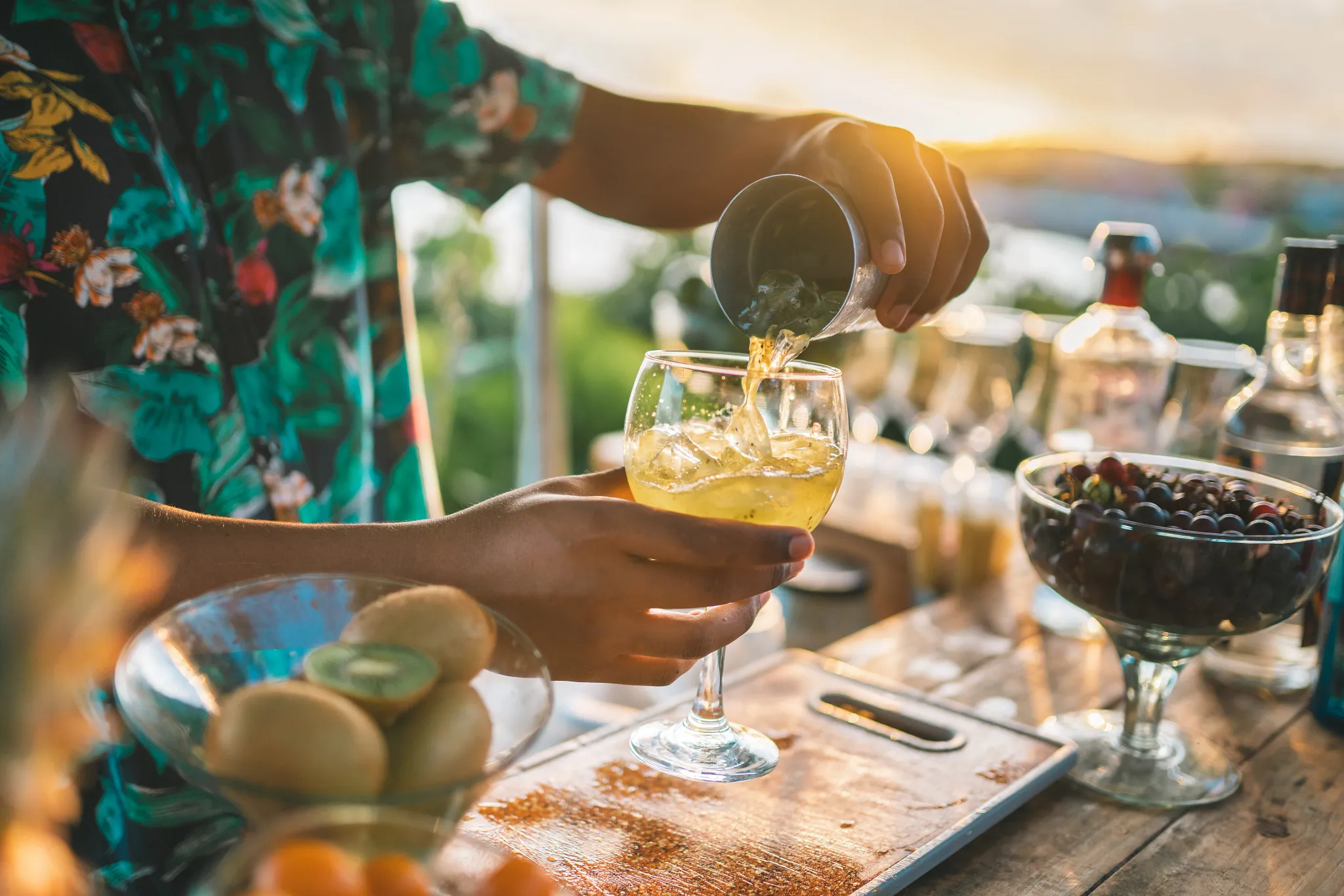 Sunset bar crafting specialty cocktails right on the beach next to the Terramar restaurant