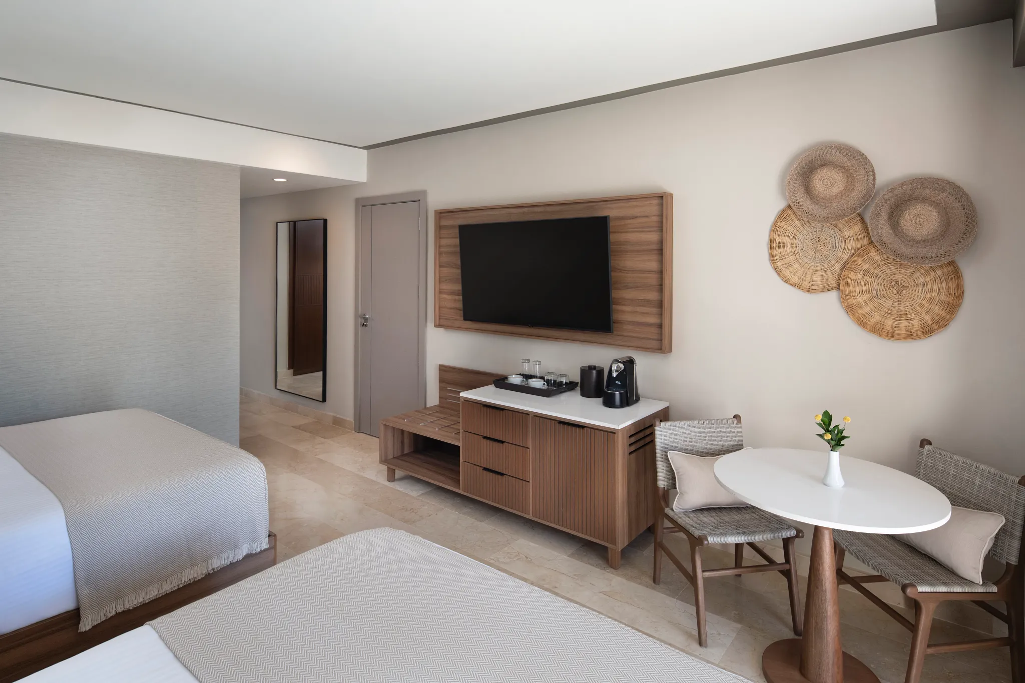 Hyatt Vivid Punta Cana cuenta con 467 habitaciones y suites diseñadas para brindar comodidad moderna. Nuestros espacios presentan texturas naturales, tonos tierra y diseños abiertos para llevar el ambiente caribeño relajado al interior. Cada habitación incluye un balcón o terraza privados con vista al mar, a las piscinas o a los jardines tropicales. Ya sea que viaje solo o con amigos, nuestras habitaciones se adaptan a su estilo, y lo invitan a relajarse, conectarse y encontrar satisfacción en su propio santuario privado.
