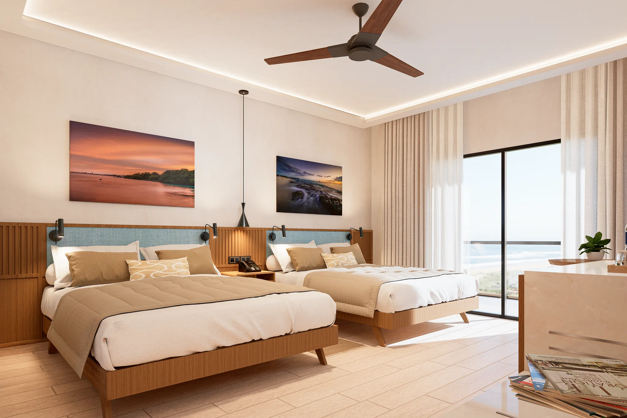 Cada una de nuestras 400 suites contemporáneas está diseñada para rodearle de comodidades informales mientras la belleza de Cancún hace su magia. Despiértese con vistas impresionantes a la bahía, al atardecer y al campo de golf desde su balcón privado. Tome una bebida de su minibar completamente abastecido para una noche de descanso con amigos. Disfrute del amplio diseño, la arquitectura de influencia maya y la sensación bohemia que mantendrán las vibras refrescantes e inspiradoras fluyendo durante toda su estadía.